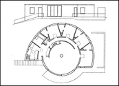 Et af de huse der har taget form af Fortet er det senest opførte fra 1957. Det gamle kanontårn har kunnet danne fundament for bygningen - deraf dens runde form.