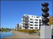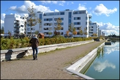 Langs den kunstigt anlagte sø ligger promenaden som knytter bebyggelserne omkring Søparken sammen
