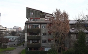 Boligbebyggelsen vender i udpræget grad ryggen mod nord og en lokalstation mens brede altaner så meget mere får lov at brede sig til den modsatte side.
