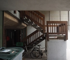 Materialevalget er en yderst pragmatisk, men også dekorativ blanding af eternit, tegl og træ udenpå en pladsstøbt betonkonstruktion.