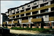 Denne variation i husenes facader går igen i etagebebyggelsens indre, hvor de cirka 300 boliger fordeler sig på 48 typer med 1-6 rum i én eller to etager.