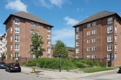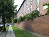 Solgården er opført i 1929 af Henning Hansen sammen med C. Th.Sørensen for Københavns almindelige Boligselskab. Den 5-etages randbebyggelse er åbnet i det sydvestlige hjørne for at lukke sollys ind i gårdrummet. Karakteristisk for bygningen er at karréens hovedfacade er vendt ind mod gården hvorfra der også er adgang til lejlighederne. Huset er opført i røde mursten med træbjælkelag og valmet tegltag.