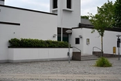 Sydsiden er de to konfirmandstuer, hvor mødeaktiviteter finder sted. De rummer ca. 50-60 siddepladser hver. Østsiden er kirkens kontorer og i vest er køkken, garderobe og toiletter. Kirken har et delvist fritstående klokketårn som er udstyret med hele fem klokker.