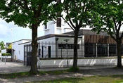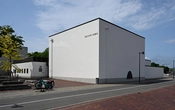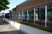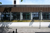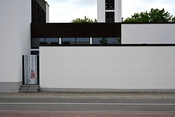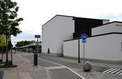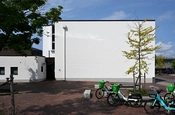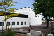 Det er en hvid, firlænget bygning med en atriumgård i midten. Rundt om gården er store vinduer ind til gangarealet, så de der kommer ind, mødes af et åbent, lyst rum.