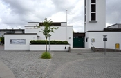 I kælderen er der lokaler til brug for kirkeligt ungdomsarbejde.