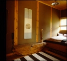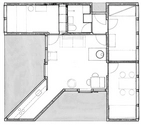 Værelset mod sydøst anvendes fortrinsvis som arbejdsrum. Husets væg- og facadeelementer er 1 meter brede, isolerede træelementer samlet med svalehaler.
