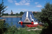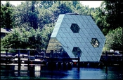 Eksperimentet Spaceframe er en 20 kvm. stor boenhed beregnet for 3-4 personer. Det første eksemplar ligger fortøjet ved Nyholm.