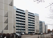 Fire otte-etagers boligblokke beliggende forskudt af hinanden med facader mod nordøst og sydvest. Hver etage indeholder 8 lejligheder fordelt med 4 på et værelse, 2 på to værelser og 2 på 3 værelser. Mod Nordøst er der altangang med betonbrøstning mens der mod sydvest er franske altaner med rækværk af jernbalustre der er fastgjort i betonen.