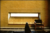 Fra kirkerummet har menigheden mulighed for at kigge ud på den omgivende verden under de kirkelige handlinger - gennem lavtsiddende, horisontale vinduer.