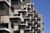 I modsætning til de øvrige facader fremtræder sydøstsiden livfuldt med sine mange altaner, der som blomster vender sig mod eftermiddagssolen.
