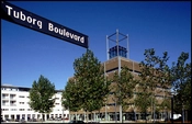 Nybygningen flagerer indkørslen til Tuborg Nord ad Tuborg Boulevard - og er trukket så meget tilbage fra Strandvejen at der dannes en forplads.