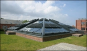 Museum er gravet ned i jorden for ikke at overbebygge grunden. Under pyramiden findes B og O udstillingen i to etager. Disse har et samlet areal på 650 m2.