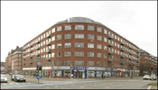 Mod øst skiller Strygejernet trafikstrømmen i Rosenørns Allé og Åboulevarden.