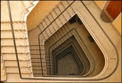 Vue ned gennem et af ejendommens tre hjørnetrapperum.
