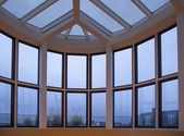 Typisk for tiden er de faste karme malet hvide mens de gående rammer er udført i ædeltræ.