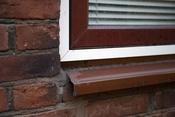 En dybtliggende dør er markeret ved skift i teglfarven til gul.