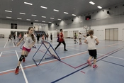 Dorte Mandrup arkitekter har på hjørnegrunden Parmagade/Amagerbrogade givet form til noget så specielt som en hybrid mellem et supermarked, en sportshal og en række gårdhavehuse. Supermarkedet er placeret i den glasdækkede stueetage med åbning ud mod Amagerbrogade. På 1. sal ligger sportshallen der på facaden er formet af skråtstillede rødbejsede vægskiver, der forbindes med lodrette vinduesbånd der leder lyset ind i hallen. Indgangen til sportshallen er placeret mod øst i Lille Parmagade hvor facaden primært er holdt i aluminium og glas. På hjørnet af Lille Parmagade/Parmagade er der i 2. sals højde indskudt et aktivitetsrum med glas fra gulv til loft. Oven på sportshallens tag afsluttes byggeriet af 12 store lejligheder. Lejlighederne der ligger på 125 og 150 m² er indrettet med et indre gårdrum, der åbner op mod himlen og er centrum i boligerne, der afsluttes i en glaskarnap ud mod Parmagade. I lejlighederne kommer man via en trappe, der elegant går over køkkenbordet op til en karnap hvorfra der er adgang til en lille sydvendt altan med udsigt over Amager. For at undgå støjgener i lejlighederne fra sportshallen er der etableret et dobbelt nedhængt loft og de bærende søjler er beklædt med isolering og gipsplader. I selve hallen er der i den østlige ende etableret et trapperum der dels fører op til aktivitetsrummet og dels fungerer som opholds- og tilskuerpladser. I hallens nordvestlige hjørne åbner hallen sig op mod Parmagade/Amagerbrogade i et højt vinduesparti der skaber kontakt med den omkringliggende by.