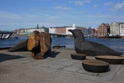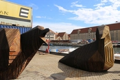 Midlertidig byrumsinstallation bestående af en gruppe skulpturer af fugle, i overdimensioneret skala. Skulpturerne er baseret på fuglearten Svartbag, en art der kendetegner åbne vidder, hav og havn. De kæmpe store fugle er placeret direkte på kajens belægning, som var fuglene landet for en kort bemærkning, og understreger hermed byrummets midlertidighed. Skalaen indbyder til at man indtager dem som siddemøbler og til klatreleg. Fuglene er udført i CNC fræset krydsfiner, og er efterfølgende blevet tjærebehandlede.