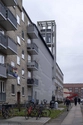 Karré-kirkens facade kendetegnes af en rytmisk komposition af horisontale og vertikale elementer, som fint forbinder det sakrale byggeri med de tilgrænsende boliger i nærområdet.