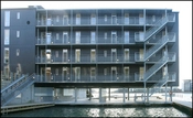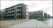 Seks slanke bygningskroppe står på pæle vinkelret på kajkanten og stikker næsen ud over øen. En almen og en privat bygherre stod bag byggeriet og der er ingen forskel på de almene og private boliger og deres placering.