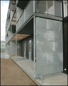 Den udvendige trappe og altangangene, der forbinder lejlighederne, er anbragt på bygningernes nordside.