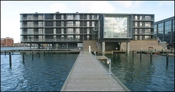 Havnebassinet er en af boligerne rekreative kvaliteter og det er muligt at leje bådplads. Dette, sammenholdt med at man nu også kan bade i havnen, skulle give mulighed varieret udendørsliv. Th. ses fælleshusets udbygning.