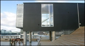 Bebyggelsen er anbragt på vandet, hvor bygningerne hviler på en smal, kunstig ø. Uderummene er udformet som træ- og betondæk placeret helt nede ved vandspejlet.