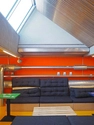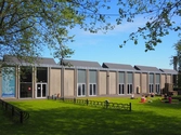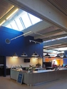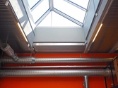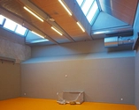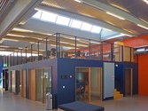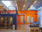 I ungdomsskolens lokaler er der også perforerede sinusplader på vægge og loft, men i lys aluminium. Vægelementer er farvesat i primærfarverne rød, blå og gul. Dele af shedtagets tagkonstruktion er her erstattet af vinduespartier, som giver ovenlys både fra nord og syd.