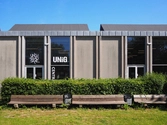 Udearealet er bearbejdet, med nyt forareal til ankomst langs bygningen og ophold/arrangementer samt cykelparkering, og er en del af det samlede ungemiljø.