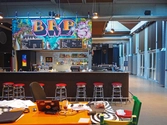 Ombygningen eksemplificerer med 3 vidt forskellige udtryk, hvor mange muligheder der er for at udnytte en regulær bygningsstruktur. På spillestedet er indretningen i mørke, gyldne tone med mørkt kobberfarvede, perforerede sinusplader på vægfladerne.