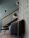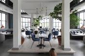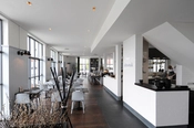 Interiør af restauranternes modtagelse med trappe til 1. sal.