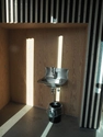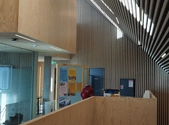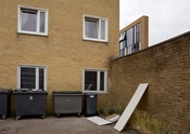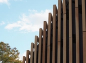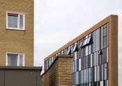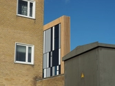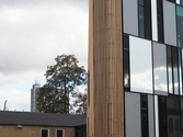 Bygningen er beklædt med ”teglbaguettes” som er placeret uden på facaden og vinduespartiet har samme farver som vinduerne i Tingbjerg med de hvide skodder og de grå felter – men i stedet for mange vinduer, har arkitekterne tegnet ét stort vindue til byen.