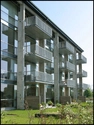 Over garageanlægget fortsætter boligerne i to rækker med mellemliggende fællesareal.