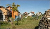 I boliggruppen Yggdrasil er husene selbyggedet og har både et individuelt præg og løsninger. PÅ billedet Cobhuset som har lervægge og -gulve samt halmisolering.