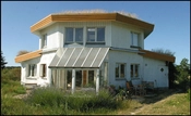 Ungdomsboligen Thorshammer. Halmhuset er angiveligt det største i Danmark og rummer 6 værelser samt køkken og alrum.