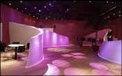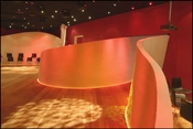Vue mod det større mødeafsnit. Bemærk stjernevrimlen af små spots i det sorte akustikloft mellem diverse lysprojektorer.