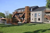 Visuelt dominerer den smukke og rustrøde cotenstål, der står flot til murværkets varme teglsten og til de sorte vinduesrammer.