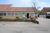 Langsgående parkering og små indgangsknaster præger ankomstvejene.