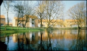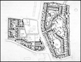 Den samlede bebyggelse med Branddammen i midten til højre.