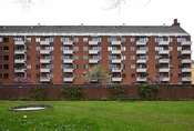 Det ses i det enkle facadeudtryk, simple og smalle vinduesrammer, udkragede betonaltaner og hjørnevinduer enkelte steder. Bygningens brug af rette, skarpe linjer brydes af betonaltanernes sinuskurver, hvilket samtidig er typisk funktionalisme. Man udnyttede og fremviste betonens formbarhed. Samtidig var det også kommet i fokus at bygge sunde boliger med adgang til lys, luft og grønne områder. Ved Volden imødekommer disse krav med rummelige lejligheder (efter datidens forhold), altaner og det store ”haveanlæg” i gården, tegnet af havearkitekt C. Th. Sørensen.