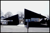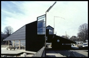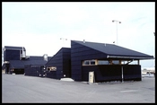 Depot-, restaurant- og klubanlæg opført i Vedbæk Havn som sorte eternitbygninger med fald på tagene og vinduespartier som eksponerende accentueringer af husformen.