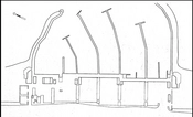 Alle havnebygninger orienterer sig om en øst-vestgående akse mellem vedbæk og Øresund - og de mindre havnebygninger åbner sig ligefrem med smalle passager mellem deres højefacaderyg.