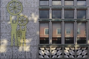 Bygningens fint detaljerede facade er opført i jernbeton, og Vilhelm Lauritzen har designet alt i huset, fra dørhåndtag, lysekroner, stikdåser, møbler til træpaneler og friser.