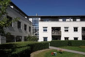 To boligblokke i tre etager placeret i vinkel mod hinanden, som et hjørnehus omkring et stort fælles trappeanlæg. Herfra et der adgang til de 18 boliger i en og to etager ad altangange mod nord og øst. Altangangene er placeret bag de murede yderfacader, men der er en søjlegang mod gårdsiden.