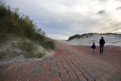 "Vestled" i Hvide Sande formidler adgang til strand og havnemole for alle uanset fysisk formåen. Pladsdannelsen består af tre dele, hvoraf de første to er bygget i 2006 og den sidste del stod færdig i 2013 i forbindelse med at havnens mole blev renoveret. Fra parkeringspladsen mødes man af en 1.350 m2 teglstensbelagt flade, der lægger sig over landskabet, og skaber forbindelse fra parkeringspladsen, over klitten og ned til stranden. Selve teglstensfladen kantes af en støbt betonkant, og de store røde tegl har sit historiske afsæt i områdets gamle klitgårde. Anden del består af en bronzeskulptur beliggende ved foden af klitten. Skulpturen er 28 cm i diameter og 28 meter lang og fungerer som en bænk. Den ligger parallelt med projektets tredje del, som er en afrundet plint af mørkt tegl, der fører ud til molen. Værket er udført af billedkunstneren Marianne Hesselbjerg, arkitekten professor Carsten Juel-Christiansen og landskabsarkitekten Torben Schønherr, og opført med støtte fra Statens Kunstfond.