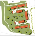 Vildrosens boliger er fordelt i syv korte længer i to etager og da alle fire boligtyper er i to planer er der tale om rækkehuse.