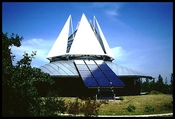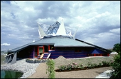 Fremtidshuset har fået en aerodynamisk hovedform for at minimere varmetabet i vinterhalvåret mest muligt. Bygningen krones af en glaspyramide der solafskærmes af udvendige solsejl. I tilfælde af orkan vil sejlene automatisk rulle sammen.