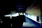 Lodret snit med den forsænkede fjernsynsstue til venstre, stuen i midten og soveværelset mod nordvest(til højre).