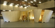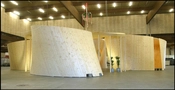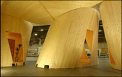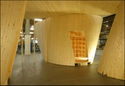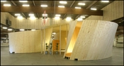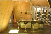 De elipsoideformede rum er dannet af et elipseformet gulv og et ditto loft, hvor sidstnævnte er drejet 50 grader og med en hældning på 10 grader - hvorefter brædder er sømmet mellem gulv og loft.