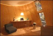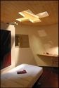 Normalelementerne er typisk forsynet med ovenlys, men i dette værelse er den ellipsoide rumform understeget med et lysbånd.